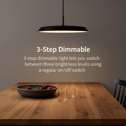 3-Stufen-Dimmfunktion: Helligkeit bequem über einen Standard-Wandschalter zwischen 100 %, 50 % und 15 % einstellen – kein externer Dimmer erforderlich.