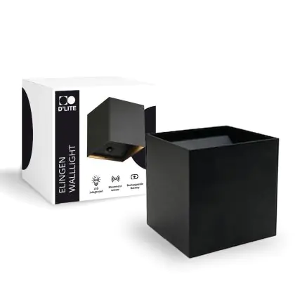 Beschreibung D'Lite Wandleuchte Elingen Aluminium Schwarz Up & Down 2.9W 170lm - 830 Warmweiß | IP65 - Batteriebetrieben - Lichtsensor