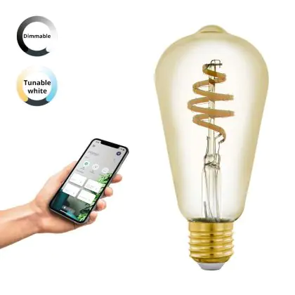 Die Eglo Connect.Z Smart LED Edison E27 Fadenlampe Messing 4.9W 360lm - 827-865 Abstimmbares Weiß | Dimmbar - Ersatz Für 25W ist eine effiziente E27 LED-Lampe mit Retrodesign und der perfekte Ersatz für Ihre konventionellen 25W Lampen mit E27. Zudem strahlt sie Licht in der Farbtemperatur 2700K - 6500K Tunable White aus und punktet durch eine lange Lebensdauer.