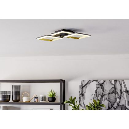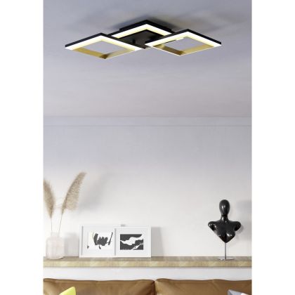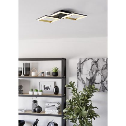 Eglo Deckenleuchte Calliera Stahl Schwarz Gold 20W 2500lm - 840 Kaltweiß | IP20 - Dimmbar