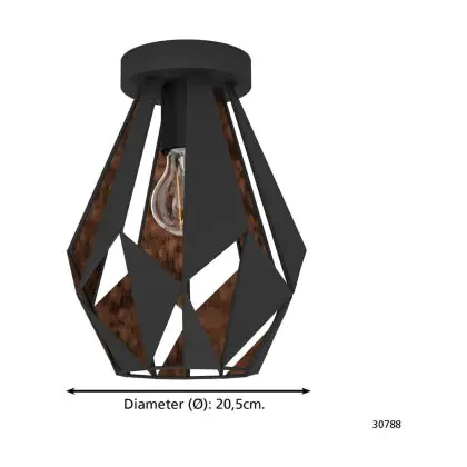 Beschreibung Eglo Deckenleuchte Carlton 1 Stahl Schwarz Bernstein | IP20 - Geeignet für 1x E27