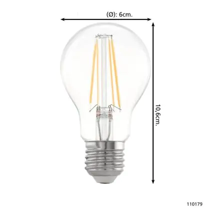 Die Eglo LED Birne E27 Fadenlampe Klar 7.3W 806lm - 827 Extra Warmweiß | Dimmbar - Ersatz Für 60W ist eine effiziente E27 LED-Lampe mit Retrodesign und der perfekte Ersatz für Ihre konventionellen 60W Lampen mit E27. Zudem strahlt sie Licht in der Farbtemperatur 2700K - Extra Warmweiß aus und punktet durch eine lange Lebensdauer.