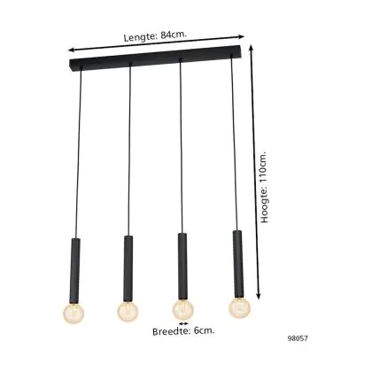 Eglo Pendelleuchte Corteva Stahl Schwarz | IP20 - Geeignet für 4x E27