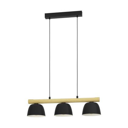 Beschreibung Eglo Pendelleuchte Sherburn Stahl Holz Schwarz Braun | IP20 - Geeignet für 3x E27