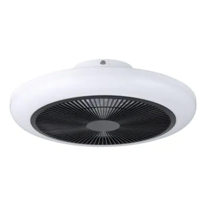 Durch die geringe Bauhöhe von nur 145 mm ist der Ventilator ideal für Räume mit normaler oder niedriger Deckenhöhe. Die moderne Kombination aus Weiß und Schwarz fügt sich harmonisch in verschiedenste Einrichtungsstile ein.
