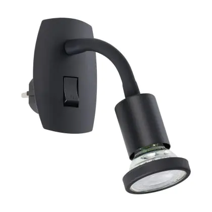 Beschreibung Eglo Wandleuchte Parrini Lamp mit Stecker Schwarz 4.5W 345lm - 830 Warmweiß | IP20 - Inkl. 1x GU10