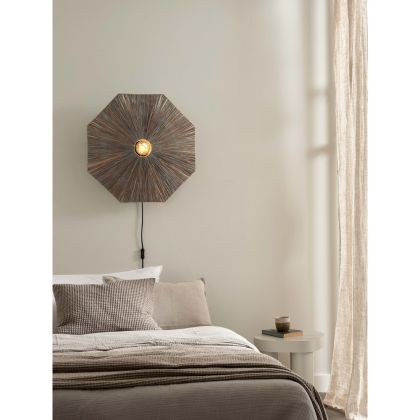 Beschreibung Good&Mojo Wandleuchte Panama Raffia Grau | Geeignet für 1x E27