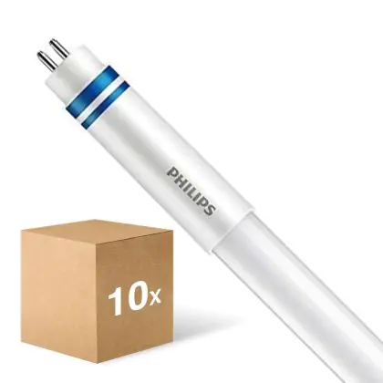 Die Mehrfachpackung 10x Philips Master LED T5 (HF) High Efficiency 7W 1050lm - 840 Kaltweiß | 55cm - Dimmbar - Ersatz Für 14W ist eine effiziente LED-Röhre und der perfekte Ersatz für Ihre konventionelle Leuchtstoffröhre mit 14W und einem G5. Die Röhre hat eine Länge von 563 mm und einen Durchmesser von 19 mm. Zudem strahlt das Produkt Licht in der Farbtemperatur 4000K - Kaltweiß aus und punktet durch eine lange Lebensdauer.