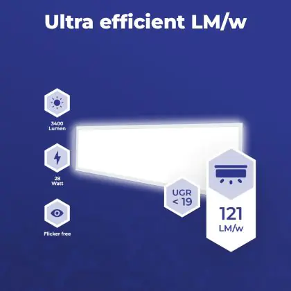 Beschreibung Noxion LED Panel Ecowhite V4.0 28W 3400lm - 840 Kaltweiß | 120x30cm - UGR <19 - Philips driver