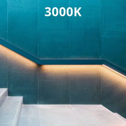 Der LED-Streifen von Noxion weist eine Farbtemperatur von Warmweiß (3.000 Kelvin) auf. Somit sorgt er in Räumen für eine gemütliche Beleuchtung. Er kann also sowohl in der Gastronomie als auch in Hotels oder zu Hause eingesetzt werden. Auch lassen sich mit ihm Akzente in Umgebungen mit tageslichtweißer oder kaltweißer Grundbeleuchtung setzen.