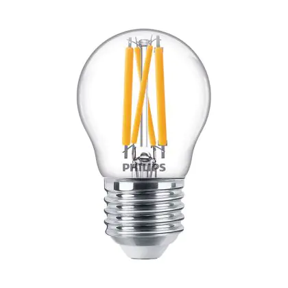 Die Philips Classic LEDlustre E27 P45 4.5W 927 470lm | DimTone - Extra Warmweiß - Ersatz für 40W überzeugt als Alternative zu 40 W Lampen mit 90 % Energieeinsparung, der höchsten Farbwiedergabestufe und mit einer extra warmweißen Farbtemperatur. Durch die geringen Wartungs- und Ersatzkosten erfolgt eine Amortisation während der Garantielaufzeit.