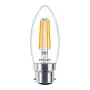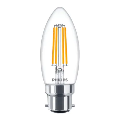 Die Philips Classic LEDcandle B22 B35 5W 827 Klar | Extra Warmweiß - Dimmbar ist eine besonders effiziente B22 LED-Lampe. Die Filamentlampe ist nicht nur optisch ein schönes Highlight, sondern überzeugt auch mit hochwertiger LED-Technik und einem extrem geringen Energieverbrauch. Weiterhin ist die LED-Lampe dimmbar.