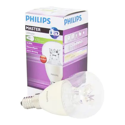 Die Philips MASTER LED Lustre E14 Kugel Krone Klar 5.5W 470lm - 822-827 Dim to Warm | Dimmbar - Ersatz für 40W ist eine effiziente E14 LED-Lampe und der perfekte Ersatz für Ihre konventionellen 40W Lampen mit E14-Sockel. Zudem strahlt sie Licht in der Farbtemperatur 2200K - 2700K Dim To Warm aus und punktet durch eine lange Lebensdauer.