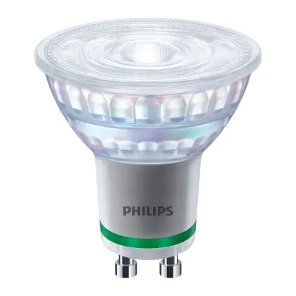 Die Lumeneffizienz des GU10 LED-Strahlers von Philips liegt bei lm/W. Herkömmliche GU10-Strahler hingegen besitzen ein Lumen zu Watt-Verhältnis von 10-15 lm/W. Somit sparen Sie allerhand Energiekosten. Hinzu kommt die lange Lebensdauer des GU10 LED-Strahlers von 50000. Somit spendet er deutlich länger Licht als ein herkömmlicher Halogenstrahler, der mit nur rund 3000 Stunden daherkommt. Das spart Ihnen zusätzlich Austausch- und Wartungskosten.